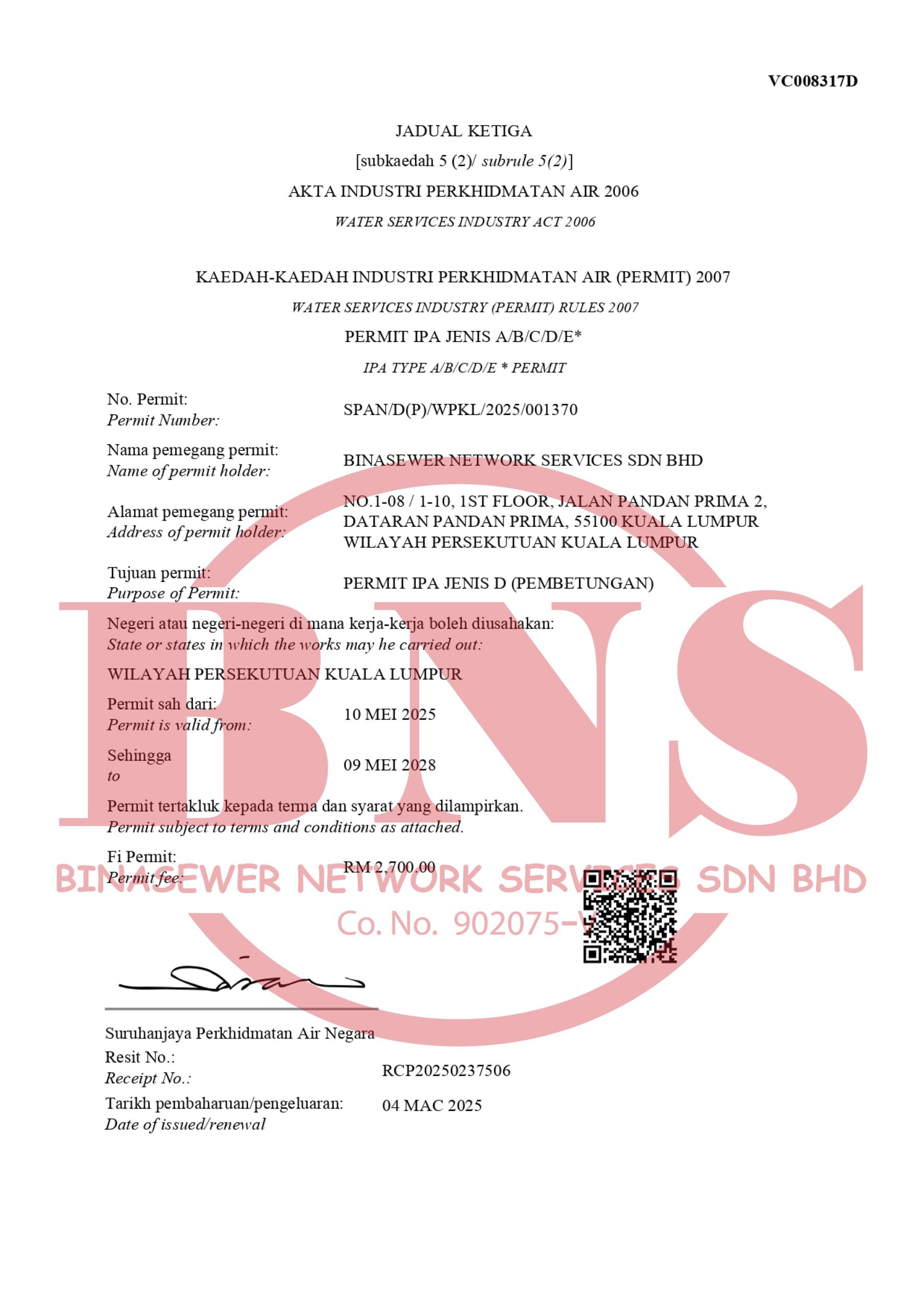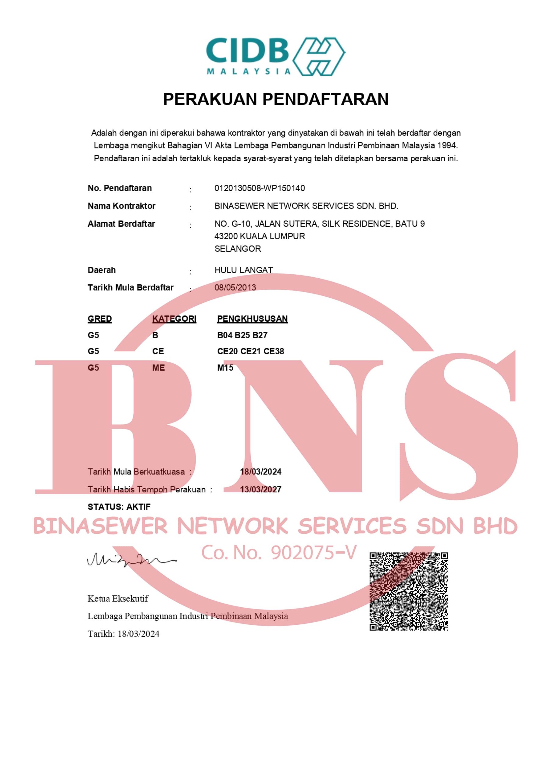 BNS (Binasewer Network Services) is a leading civil and structural engineering company in Malaysia, with specialized expertise in the sewerage industry. Our commitment to excellence and innovation has positioned us as a key player in delivering high-quality infrastructure projects.
